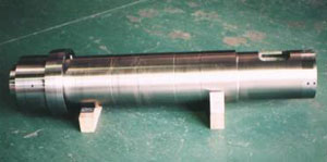 図2に構造の断面図を、図3に外観写真を示します。構造的には円筒形状であるスリーブを内層と外層の二層に分けて、内層をサイアロンの筒、外層を特殊合金の筒として組立構造としました。内筒のサイアロンには保温性、耐焼き付き性などスリーブの基本機能を持たせ、外筒の特殊合金には荷重などの外力からサイアロンを保護する役目を担わせています。内筒と外筒は焼バメにて一体に組み立てます。