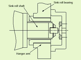 適用に際してはサイアロンの破損を防止するため、①ロールの芯(しん)ずれに対応した形状設計、②軸受取り付け部の適切な隙間の設定、③組み替えメンテナンス時の作業標準の設定を行った。図3に軸受にサイアロンを適用した場合のシンクロール軸部の標準構造を示します。