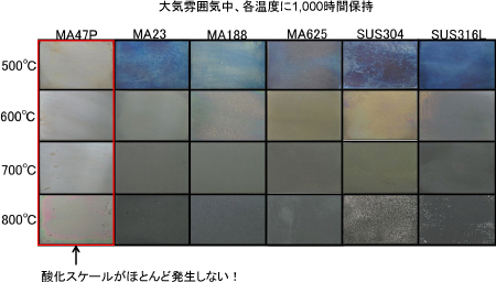 MA47Pは際立った耐酸化性を有し、酸化物のスケール等によるコンタミや構造物のCr成分と処理物の反応でお困りのお客様に最適な合金です。