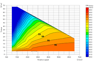 なお、この結果では同一構造、同一駆動条件でコア材種のみを変更していますが、アモルファス合金の適用を前提として構造及び駆動条件の最適化を行ったモータでは従来材では困難な超高速回転を実現することが出来るのでモーターの小型・高出力化が可能となります。