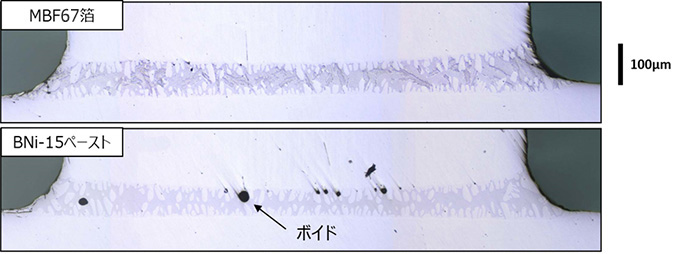 箔ろうはペーストのようなバインダーを含まないため、接合層には、脱バインダー工程に起因するボイド(空洞)がほとんど形成されず、高い信頼性を有する接合体が得られます。