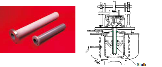 We offer a line-up of stalks and thermocouple protection tubes, as Sialon parts for lowpressure casting machines.