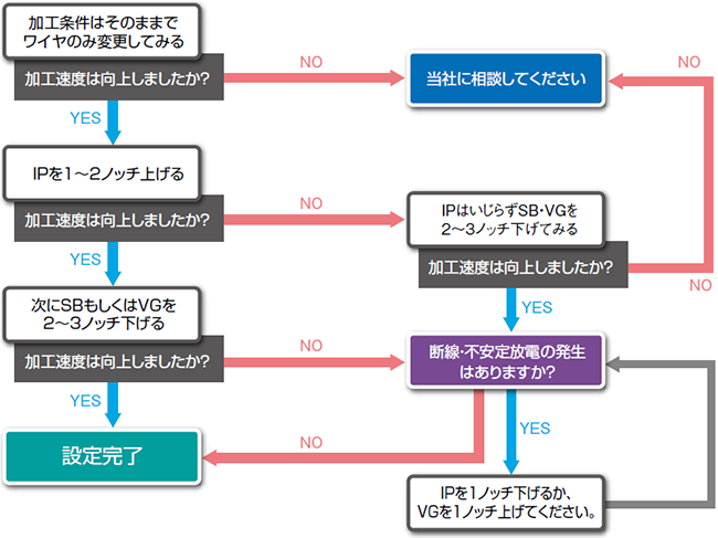 加工条件の最適化 例)三菱電機製ワイヤ放電加工機の場合