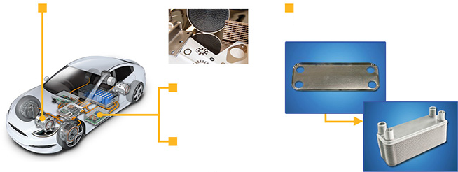 主に金属接合用途に用いられますが、ニッケル合金ろう材は、高効率給湯器用プレート式熱交換器、各種産業用熱交換器、EGR(Exhaust Gas Recirculation)クーラー、メタル担体等に使用されています。